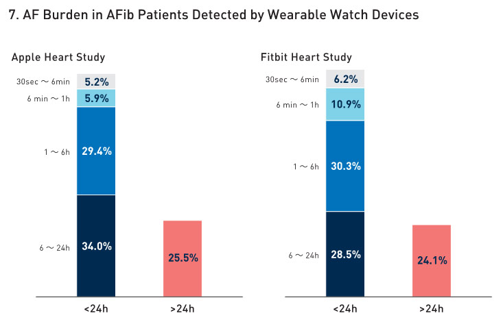 Similarly, wearable consumer devices have found that over 70% of detected irregular rhythms lasted less than 24 hours*7. This means many newly detected AFib cases are still in an early stage, when the risk of heart failure or stroke is relatively low. There are medications called anticoagulants that reduce stroke risk by preventing blood clots. However, in low-risk patients, the risk of bleeding side effects may outweigh the benefits. Therefore, in early-stage AFib, less burdensome approaches that help prevent progression (prevent episodes from becoming longer) are important.