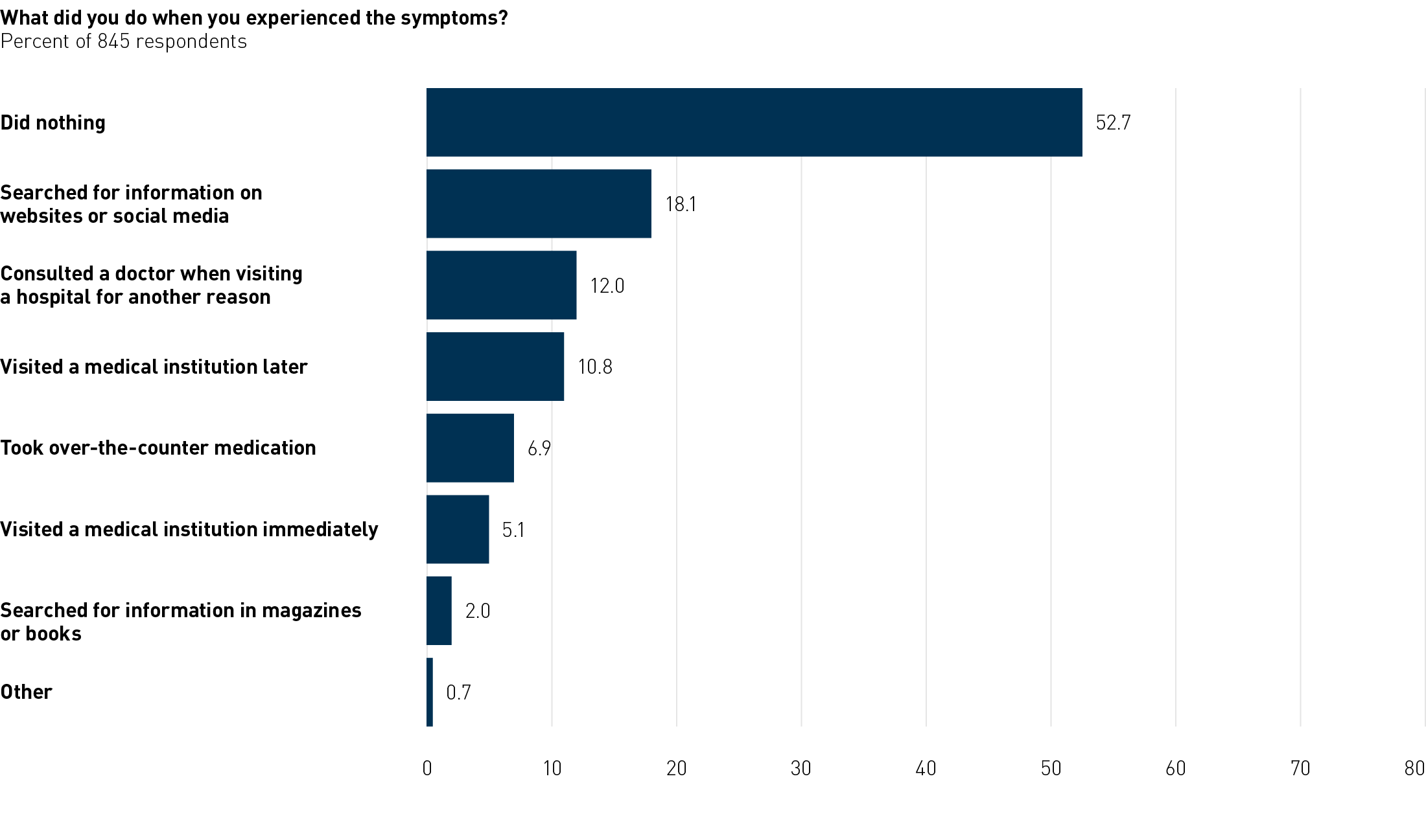 Approximately one in two women did not take any action despite experiencing such symptoms.